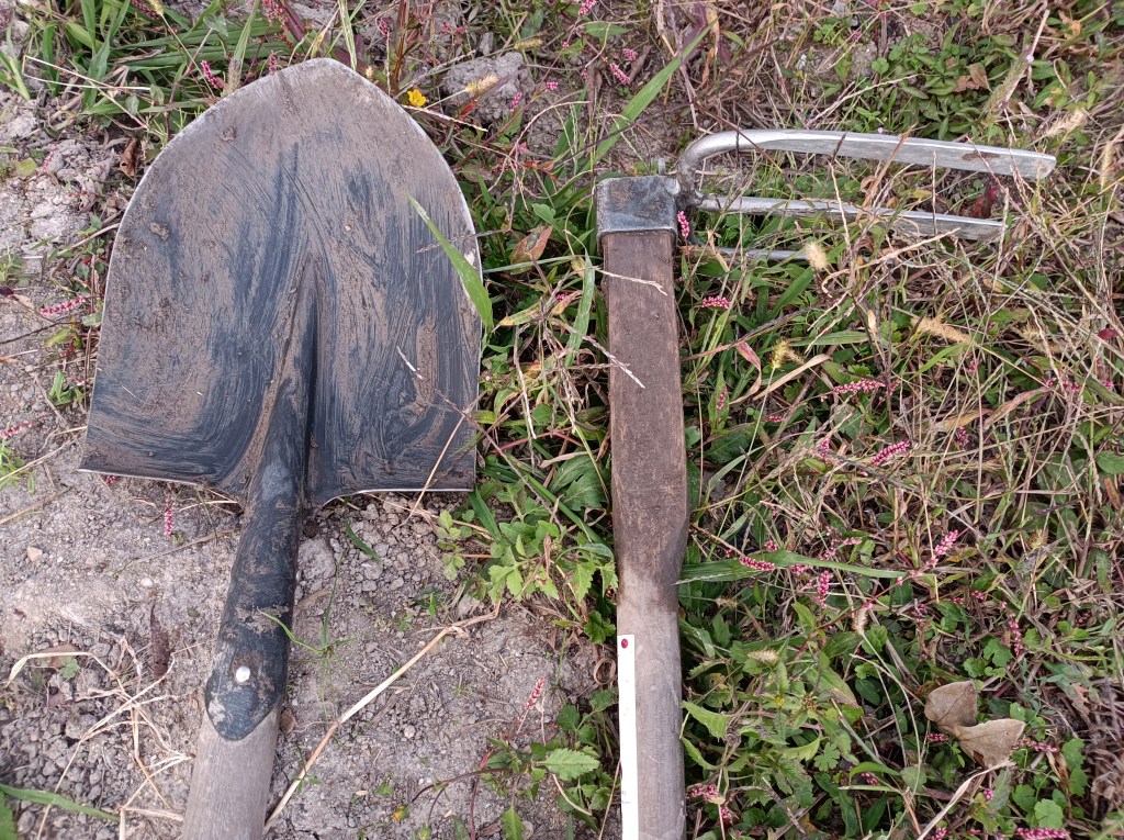 穴掘り機を頂きました。農機が増えて使用するには置き場を作る必要がでています。水抜きと駐車場整備の次は物置小屋を作りたいのですが、工具、農具、資材がまだまだ不揃いです。引き続き道具を譲って頂ける方を探しています。軽バン、軽トラの車が特に必要です。(MT希望)