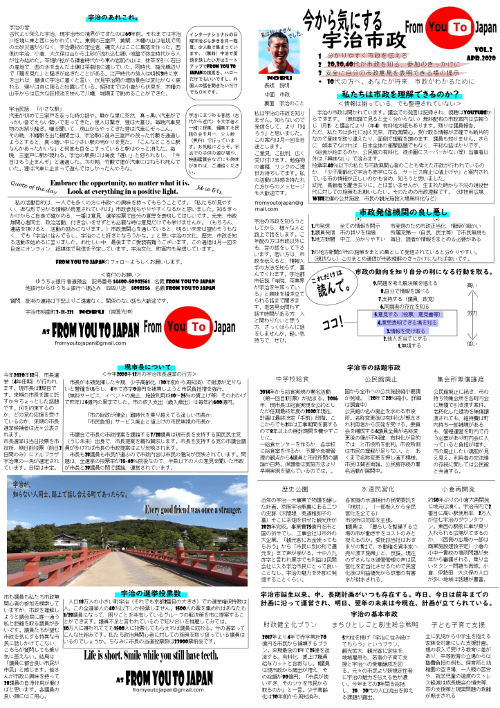 市政理解のきっかけのため、Nobuがまとめ通信を発信している