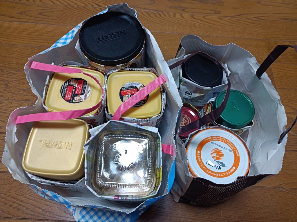 空き瓶、空きペットボトルを大量に頂きました。調味料、水保存に使用しています。あれもこれも集めています。何か使ってほしいものがあればご連絡ください。