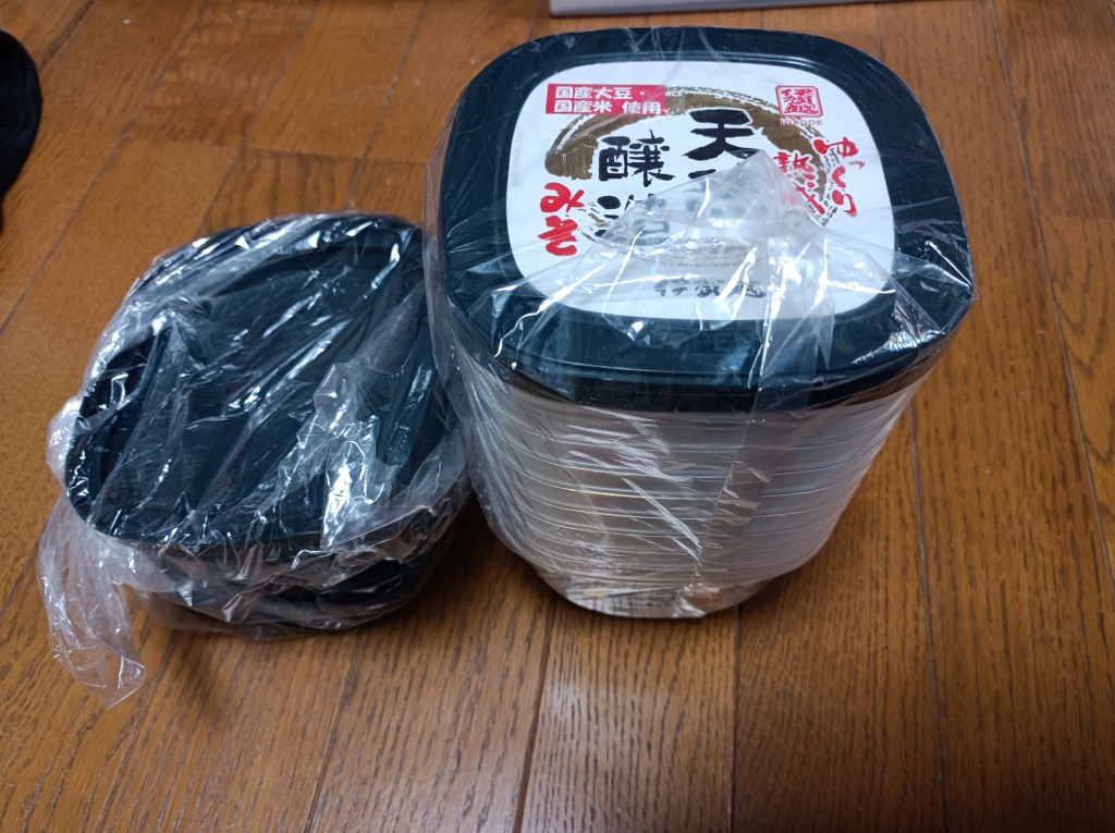 頂きものを小分けする、湧き水を組むための容器を預かりました。固形物は容器、飲み水はボトルに入れて別の方へお分けします。