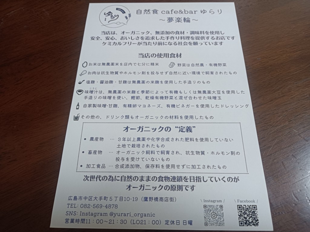 自然食カフェバーゆらり https://www.instagram.com/yurari_organic/?utm_source=ig_web_button_share_sheet&igshid=OGQ5ZDc2ODk2ZA==