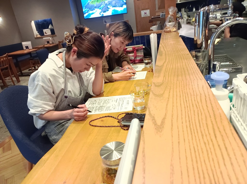 世界一、安全な食材が集まるこの場所で働く人、来店するお客さんは店の食材がどうやって育てられたものかを知っているか聞き取りを行いました。世間でも「オーガニック」に拘る人は一定数いますが、じっさいどのように作られ、どれだけ貴重かを知っている人は拘る人のごく一部です。オーガニックに拘る人の意識を深めることがオーガニックに関心を持つ人が増えることに繋がると考え、お店メニューの勉強会を行いました。
