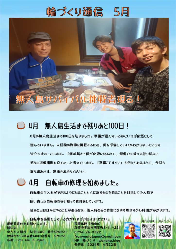 5月19日(日)<催し>体力測定 琵琶湖一周 https://forms.gle/8rUHjcndmRHTizYu8